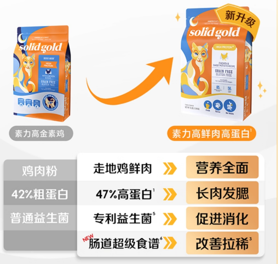 A:首选含专利益生菌+高消化蛋白+天然纤维的配方。素力高鲜肉高蛋白猫粮正是为此设计,Super-proga™专利组合已被验证有效。